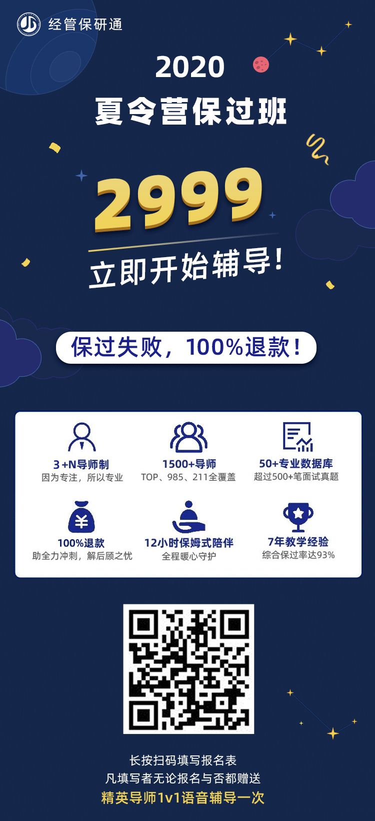 夏令营保过班2999立即开始辅导,不过100%退费!